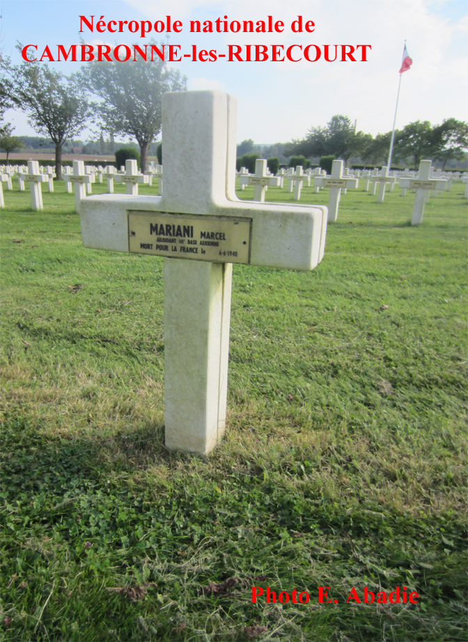 […] il a été procédé à l’exhumation du soldat Defendini Ange né à Ajaccio (Corse),sergent chef aviateur, mort à Campagne le 7 juin 1940. Ces indications ont été relevées sur la croix surmontant la tombe qui porte en outre classe 1933 Mle 137.