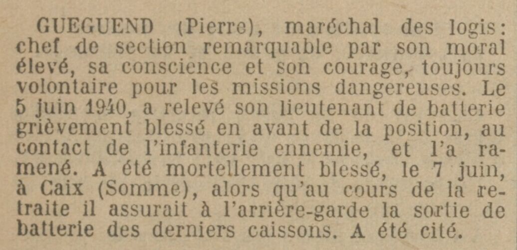 GUENEGOMort pour la France le 7 juin 1940 à Caix, (Somme)