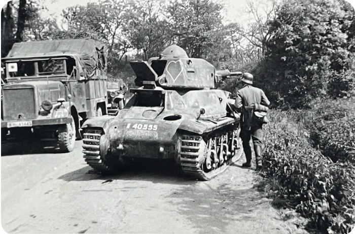 Bonjour. Une photo d'un des chars HOTCHKISS H-39 du 27ème BCC - 3ème compagnie engagé dans les combats de la contre offensive au sud d'Abbeville. En voici les comptes-rendus conservés au SHD : "Le 2 juin. A 21 heures, le bataillon fait mouvement de BLANGY au bois de la CROIX.