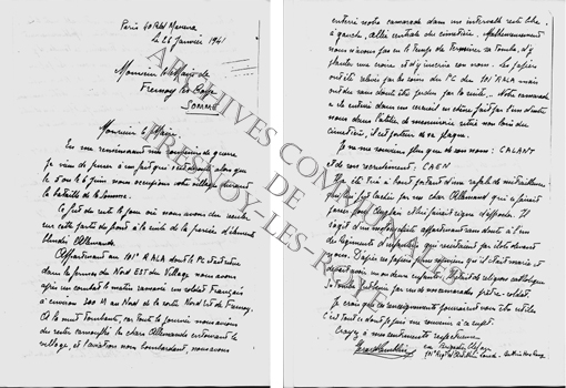 Mais ton intervention m'a fait souvenir d'un courrier retrouvé dans les archives de la commune. Une lettre écrite le 26 janvier 1941, depuis Paris, par un certain Gérard Lamblin*, ex brigadier-chef au 101e R.A.L.A. - batterie hors-rang, et expédiée au maire de Fresnoy-lès-Roye :