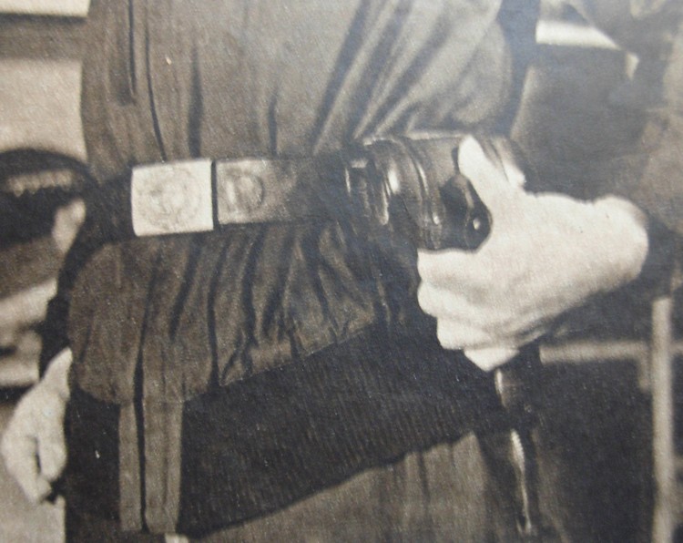 Maintenant notre homme va remplir les poches du "Kanalhöse", il commence pas loger un couteau dont la lame est à gravité. (Non visible, la poche prévu pour le pistolet lance-fusées, Leuchttpistole).