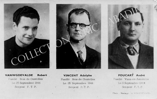 Deux des fusillés de Gentelles figurent sur cette carte souvenir